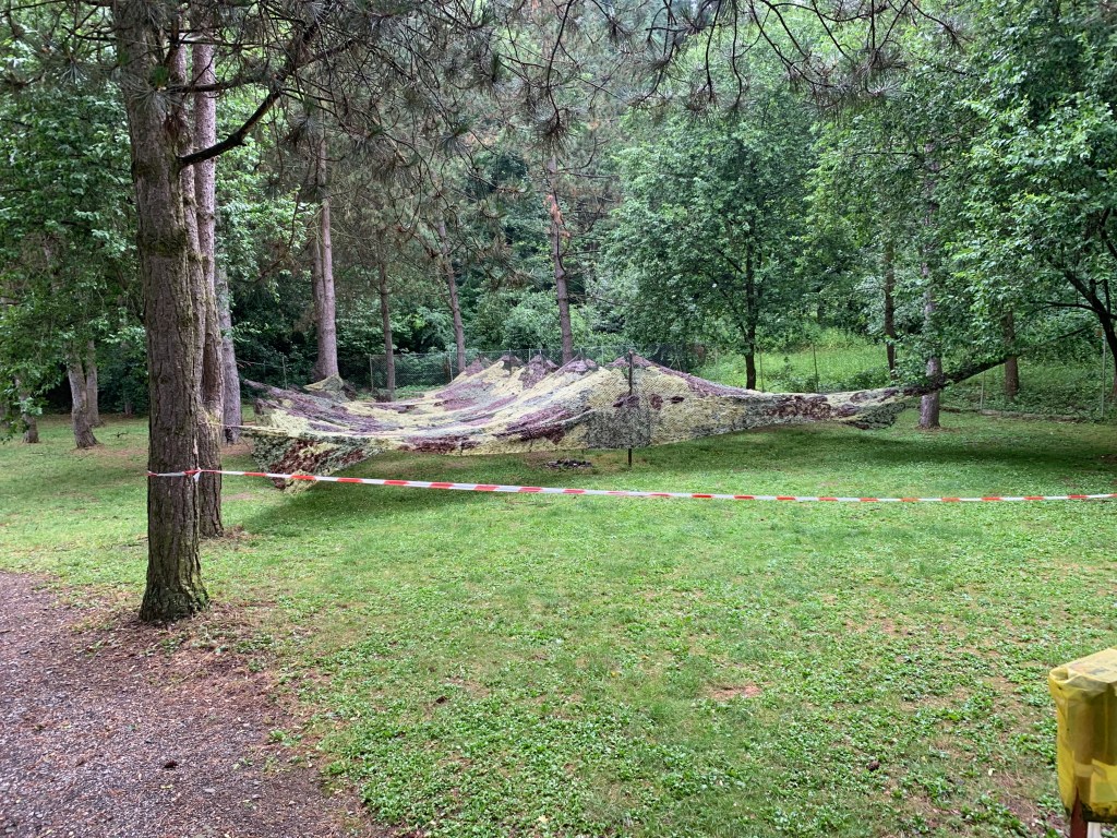 Kluci si ještě střihli jednu speciální misi – napnout a provětrat maskovací síť, která bude později sloužit jako stínítko. Při té příležitosti zneškodnili i malou vosí kolonii. Nikdo nepřišel k úrazu :).